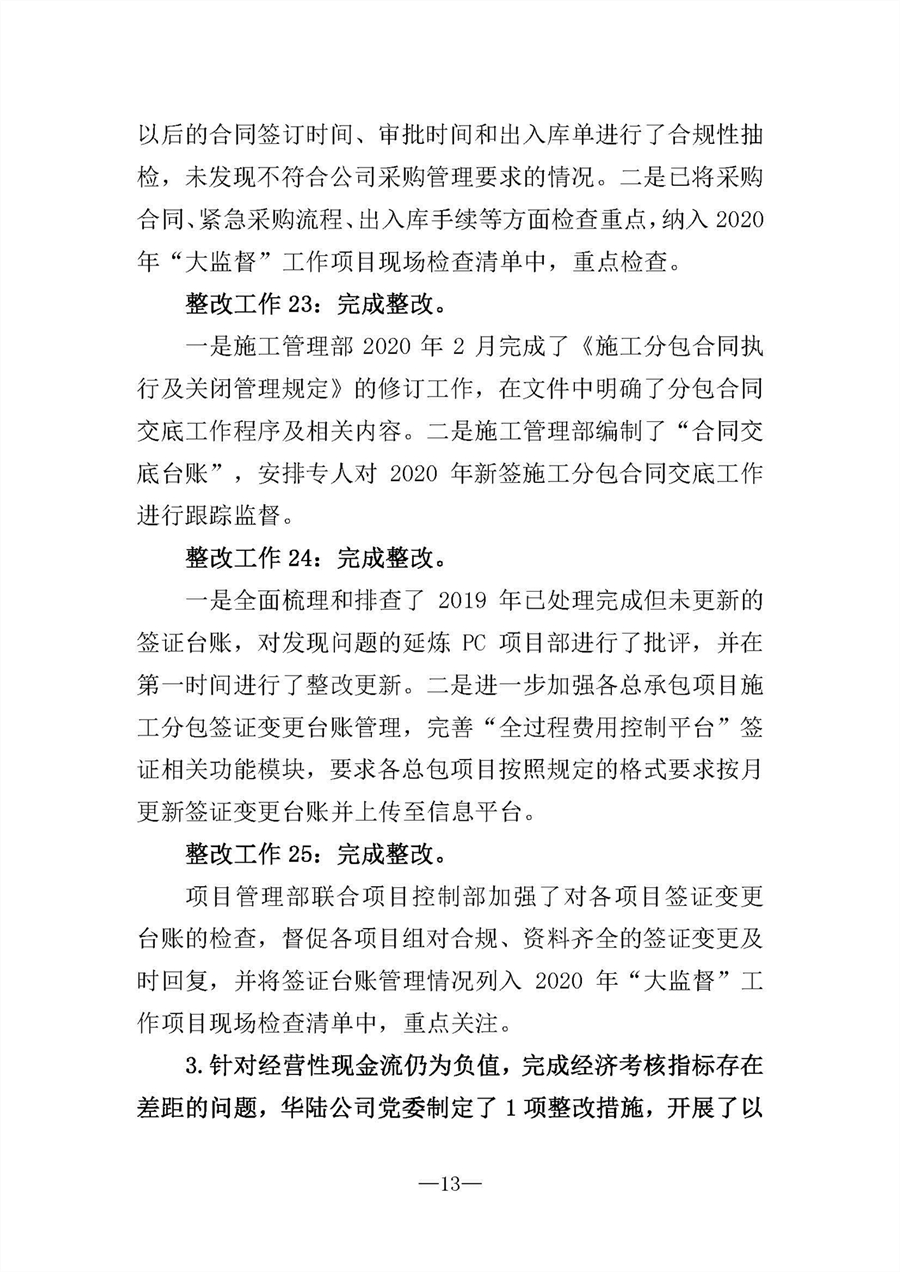 中共华陆工程科技有限责任公司委员会关于巡视“回头看”整改情况的通报