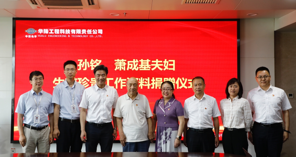 在捐赠仪式上,李玲同志深情回顾了孙铭、萧成基夫妇的光辉一生,表示很荣幸作为亲属代表,亲手将父母数十年积累下的珍贵工作资料捐赠给其为之热爱并奋斗几十年的华陆公司,希望通过这些宝贵资料能够更好传承我国第一代化工人深厚的家国情怀、强烈的责任担当、顽强的拼搏精神和无私奉献的高尚品质,并衷心祝愿中国化学工程及华陆公司在新的奋进征程上,再谱新篇章、再创新辉煌。