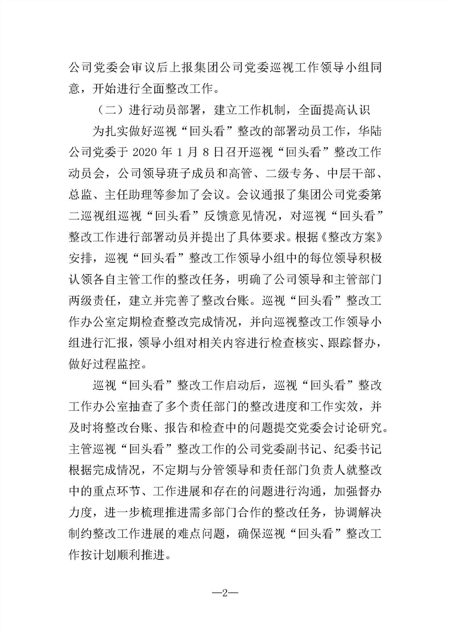 中共华陆工程科技有限责任公司委员会关于巡视“回头看”整改情况的通报